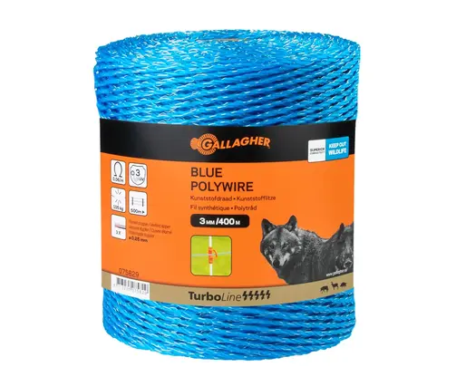 Die seit Jahren in der Praxis bewährte Weidezaunlitze von Gallagher - TurboLine Vidoflex 9. Die 6 Edelstahldrähte (0,15 mm), 24 Polyethylendrähte (0,25 mm) und 3 verzinnten Kupferdrähte (0,25 mm) gewährleisten einen sicheren Stromfluss. Dadurch wird eine 40-fach bessere Leitfähigkeit, als z.B. mit Standardlitzen erreicht. Diese Vidoflex 9 TurboLine Plus Ausführung ist 50 % reißfester, dehnt sich nicht aus und ist sehr gut sichtbar. Einfach aufzuwickeln, somit ideal zur Verwendung mit einer Haspel. Diese blaue Litze ist geeignet für lange, mobile Einzäunungen z.B. Rotwild und wurde speziell entwickelt zum Abwehren von Wildschweinen und Wölfen. Studien belegen, dass Wildschweine schlecht sehen und vorwiegend Blau wahrnehmen.