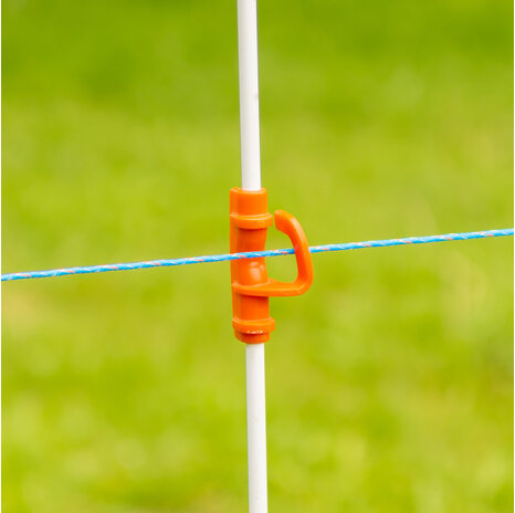 Wenn Sie zwei verschiedene Zäune mit einer Länge von 1,0 km bauen würden und einer aus einem einzelnen Strang aus Standarddraht/-band/-seil und der andere aus einem einzelnen Strang aus TurboLine besteht, beide Zäune am Anfang 8.000 Volt anzeigen würden. Am Ende des Zauns würden Sie jedoch nur 600 Volt auf dem Standardleitermaterial ablesen, während am Turbo-Zaun 7.100 Volt abzulesen wären. Der Widerstand eines Leiters (Draht/Band/Geflecht) wird in Ohm gemessen. Je niedriger der Widerstand, desto leitfähiger ist der Draht/das Band/Geflecht. Achten Sie daher immer auf einen möglichst niedrigen Widerstand je Meter.
