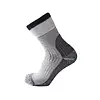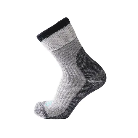 Das doppellange Komfortbündchen bleibt dank des durchgängig gestrickten elastischen Bündchens an seinem Platz. Das Bündchen ist sehr dehnbar, erleichtert das An- und Ausziehen und reduziert den Druck auf Wade und Schienbein. Die Nylon-Verstärkung auf der Außenseite sorgt für Strapazierfähigkeit, während die Innenseite der Socke aus Merino gestrickt wurde, um ein angenehmes Gefühl auf der Haut zu gewährleisten. Die dunkleren Einsätze an der Sohle der Socke stellen eine zusätzliche Nylonverstärkung dar.