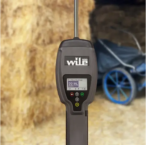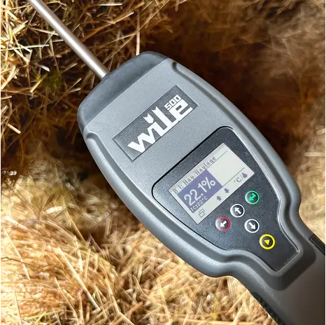 Das Wile 500 ist ein modernes, präzises und robustes Feuchtigkeits- und Temperaturmessgerät für zu Ballen verarbeitetes Heu, Gärheu, Stroh und Silage.