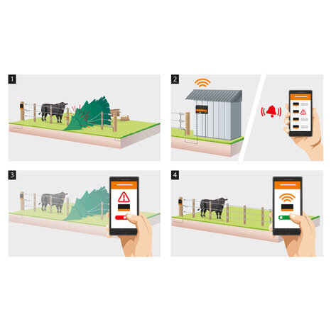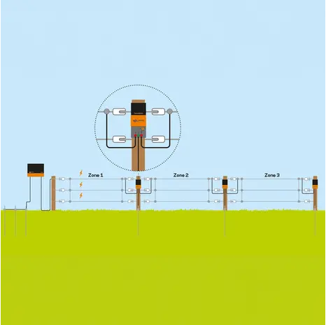 Jeder Zaunmonitor sendet die Informationen entlang der Zaunlinie zurück an Ihr Weidezaungerät der iSerie.
