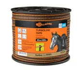 Ein sehr reißfestes, hochleitfähiges Gallagher TurboLine-Weidezaunband (Breitband) für lange, permanente Pferdezäune. Es bietet eine ausgezeichnete Sichtbarkeit und ist besonders stabil durch den verstärkten Rand. Garantierte Stromversorgung auf der gesamten Länge des Zaunes dank ausgezeichneter Leitfähigkeit. Die einzigartige Zusammenstellung gewährleistet eine 40-fach bessere Stromleitung als Standard-Weidezaunband.
