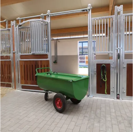 Der GROWI® Futterwagen Typ 180 LL von ist ein unverzichtbarer Helfer für die tägliche Arbeit im Stall. Das robuste Transportgerät ist für das effiziente Transportieren von Futter von einem Ort zum anderen konzipiert. Mit seinen luftbereiften Rädern und der luftbereiften Lenkrolle bietet er perfekte Wendigkeit und gestalted das Schieben leicht und mühelos. Dies führt zu einer erheblichen Arbeitserleichterung bei der täglichen Fütterung.