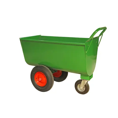 Der Wagen ist komplett pulverbeschichtet (Farbe: grün RAL 6010), was ihn robust und langlebig macht. Durch die wasserdichten Schweißnähte und den mehrfach gekanteten Wannenrand erhöht sich seine Widerstandsfähigkeit nochmals.