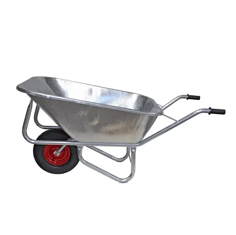 Diese Großmuldenschubkarre ist luftbereift 400/100 mm. Diese überaus strapazierfähigen Karre ist außerdem komplett im Vollbad feuerverzinkt. Dadurch wird eine Rostbildung vermieden.