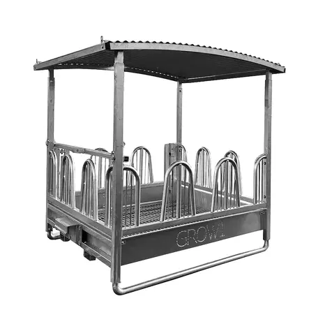 Die GROWI® Heuraufe Comfort-Line Plus mit Palisadengitter besitzt 12 Fressplätze und ist ideal für Pferde und Rinder geeignet. Die komplett feuerverzinkte Heuraufe zeigt eine besonders robuste Ganzstahlausführung aus Quadratrohr. Die 420 kg schwere Raufe weist ein Innenmaß von 2 x 2 m auf. Die Futterwanne ist höhenverstellbar und auf die Anforderungen und Bedürfnisse vor Ort einstellbar. Die Dachhöhe außen beträgt 210 - 230 cm.