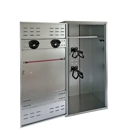 Original Growi® Sattelschrank mit verstellbarem Einlegeboden, zwei Sattelhaltern und zwei Trensenhaltern. Sehr flexibel durch verstellbare Haken und Expander für Trensen.