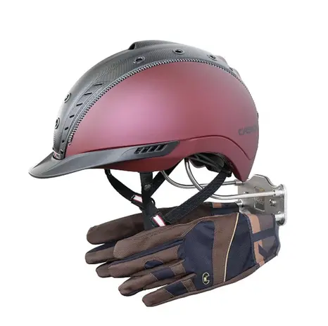 Dieser aus Edelstahl gefertigte Halter kann an an eine Wand oder im Schrank befestigt werden und bietet eine sichere Ablage für Reiterhelme und Handschuhe. Abmessungen (H x B x T): 270 x 150 x 90 mm. Lieferung erfolgt ohne Deko.