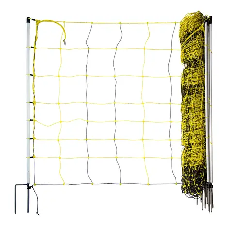 Die gelben, stromführenden Litzen und die weißen Pfähle garantieren eine optimale Erkennbarkeit auch in der Dämmerung, sodass z.B. Wild das Netz frühzeitig erkennen und umgehen kann. Die nicht-stromführenden Litzen im Schafnetz sind schwarz und damit leicht von den stromführenden Litzen zu unterscheiden.