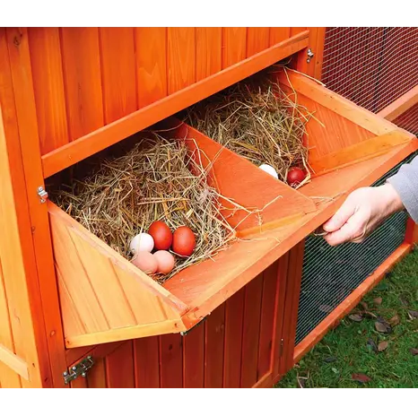 - Legenest mit Klapptür für einfaches und sicheres Eiersammeln