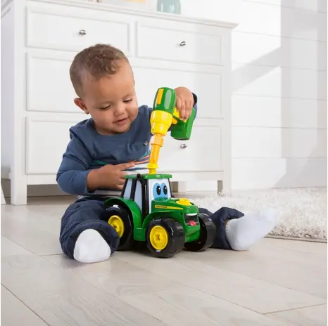 Hast Du Deinen Johnny Traktor fertiggestellt, ist Spielen angesagt! Die drehbaren Reifen und das freundliche Gesicht sorgen für tollen Spielspaß auf dem Bauernhof. Du möchtest lieber basteln? Dann nimm Deinen Spielzeugtraktor einfach wieder auseinander und schraube ihn so oft du willst erneut zusammen. Alle Einzelteile sind dabei perfekt geeignet für Kinderhände: extra leicht und einfach greifbar!