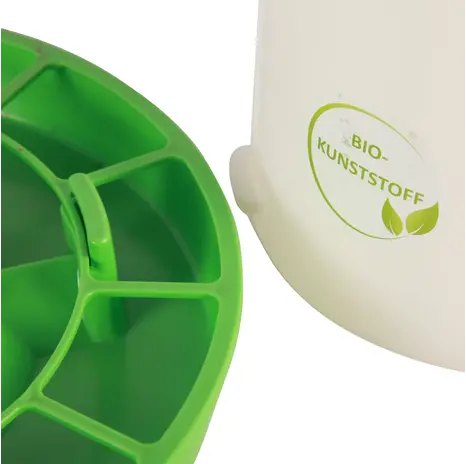 Der weiß-grüne BIO Futterautomat ist der ideale Futterspender für kleines Geflügel. Der Automat besteht aus hochwertigem Kunststoff und ist dank seiner Form und Bauweise besonders pflegeleicht und kann leicht transportiert werden. Außerdem können sich keine Tiere auf dem Futterautomaten niederlassen, wodurch das Futter nicht verschmutzt oder ausgekehrt wird. Des Weiteren ist der Futterautomat sehr standfest und kann nicht einfach von Ihrem Geflügel umgestoßen werden.