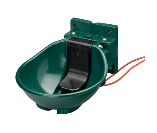 Beheizt werden Tränkeschale und Ventil durch ein 24 Volt Heizkabel (33 Watt). Das integrierte Frostschutz-Thermostat schaltet das Kabel bei ca. 5°C ein und bei ca. 15°C wieder aus. Dadurch bleiben Tränkeschale und Ventil bis zu ca. -20°C frostfrei. TRAFO ERFORDERLICH!