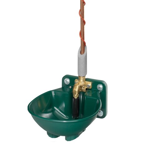 Mit einer Breite von 257 mm und einer Ausladung von 305 mm ist dieses Tränkebecken aus Kunststoff mit Pendelventil passend für alle Pferde, vom Pony bis zum Kaltblüter. Es ist außerdem ideal für Rinder geeignet. Der Anschluss an die Wasserleitung erfolgt über das R ½" Innengewinde, von oben oder unten.