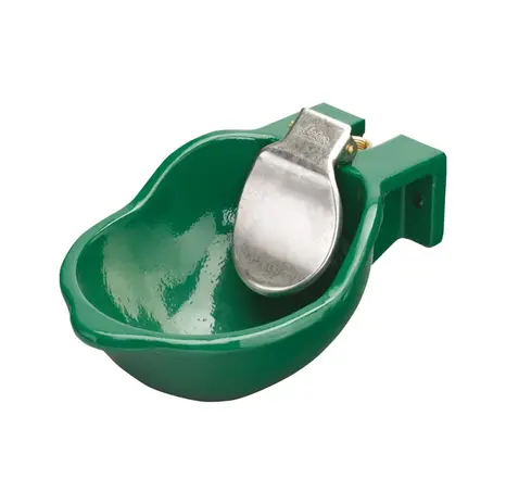 Gusstränkebecken mit Spezial-Pulverbeschichtung. Geeignet für Pferde und Rinder. Mit Edelstahldruckzunge, Messingventil und Edelstahlventilfeder.