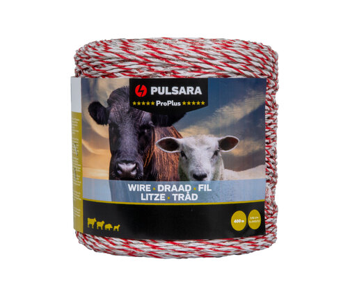 Die seit Jahren in der Praxis bewährte Weidezaunlitze von Pulsara - Pro. Die 6 Edelstahlleiter (0,15 mm) und 3 Kupferleiter (0,20) gewährleisten einen sicheren Stromfluss, so dass kleine und leicht zu hütende Tiere sicher eingezäunt werden können. Durch die Farbe (weiß/rot) fügt es sich sehr gut in die natürliche Umgebung ein. Einfach aufzuwickeln, somit ideal zur Verwendung mit einer Haspel. Die Litze ist geeignet für kurze, lange Einzäunungen für z.B. Rinder, Schafe, Wildschweine und Hunde.