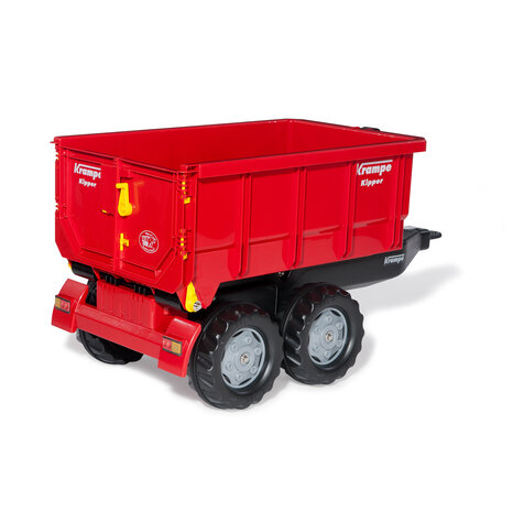 Für zusätzliche Sicherheit und Spaß verfügt dieser Anhänger über verriegelbare Hecktüren, damit die Ladung immer sicher an ihrem Platz bleibt. Die Absetzmulde des rollyContainer Krampe bietet viel Platz für Sand, Steine, Spielzeug oder alles, was die kleinen Bauern auf ihren Abenteuern transportieren möchten.
