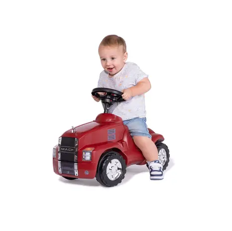 Entdecken Sie den rollyMinitruck Mack (rot) für Kinder im Alter von 1½ bis 4 Jahren! Dieses innovative Fahrzeug vereint Spaß, Sicherheit und praktische Funktionen, die die Entwicklung Ihres Kindes fördern. Die Motorhaube kann geöffnet werden, um neugierige kleine Köpfe in die faszinierende Welt der Mechanik eintauchen zu lassen. Ein kleines Ablagefach unter der Motorhaube bietet Platz für Spielzeug oder Snacks für unterwegs.