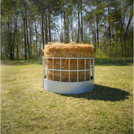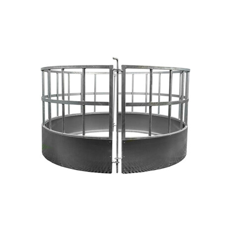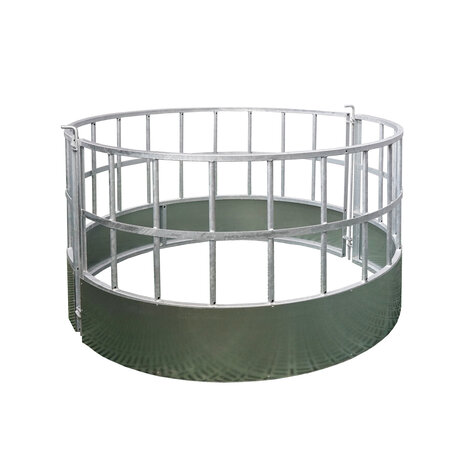 Eine einfache und günstige Lösung zur Fütterung von Rundballen bis 158 cm Durchmesser, eher für kleine Herden geeignet. Der Rundballenfutterring kann mit zwei Zwischenstücken vergrößert werden (separat erhältlich 0342).
