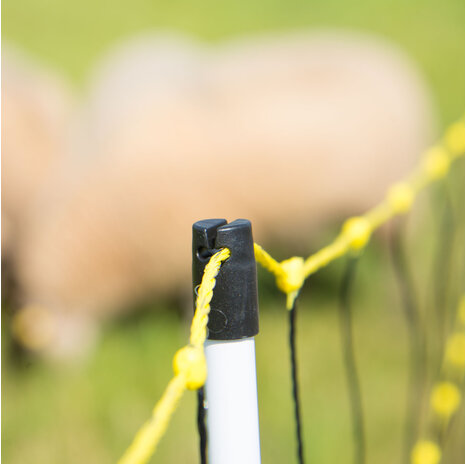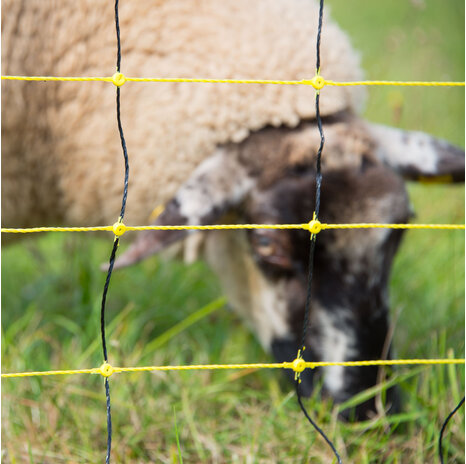 Ein weiterer Vorteil ist die hohe Belastbarkeit - die Ober- und Bodenlitzen sind um 60 % verstärkt (3 x 5 Monofile à 0,40 mm), weshalb das Netz beim Abspannen auch hoher Belastung standhält. Stabile und abgerundete Plombem auf den Maschenkreuzungspunkten garantieren eine hohe Reißfestigkeit und robuste Edelstahlklammern machen ein einfaches Verbinden von Netz zu Netz möglich - ohne Werkzeug oder verlegbare Einzelteile. Aufgrund der andersfarbigen Pfahlisolatoren am Netzanfang wird Ihnen der Aufbau enorm erleichtert und das Schafnetz verheddert sich nicht so schnell. So sind Ihre Tiere sicher eingezäunt und Sie haben lange Freude an dem horinetz.