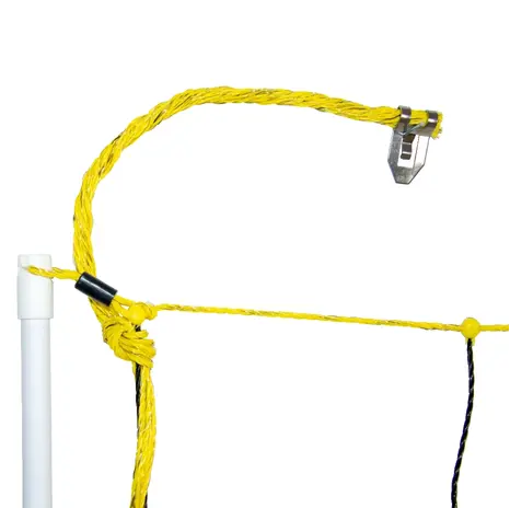 Ein weiterer Vorteil ist die hohe Belastbarkeit - die Ober- und Bodenlitzen sind um 60 % verstärkt (3 x 5 Monofile à 0,40 mm), weshalb das Netz beim Abspannen auch hoher Belastung standhält. Stabile und abgerundete Plombem auf den Maschenkreuzungspunkten garantieren eine hohe Reißfestigkeit und robuste Edelstahlklammern machen ein einfaches Verbinden von Netz zu Netz möglich - ohne Werkzeug oder verlegbare Einzelteile. Aufgrund der andersfarbigen Pfahlisolatoren am Netzanfang wird Ihnen der Aufbau enorm erleichtert und das Schafnetz verheddert sich nicht so schnell. So sind Ihre Tiere sicher eingezäunt und Sie haben lange Freude an dem horinetz.