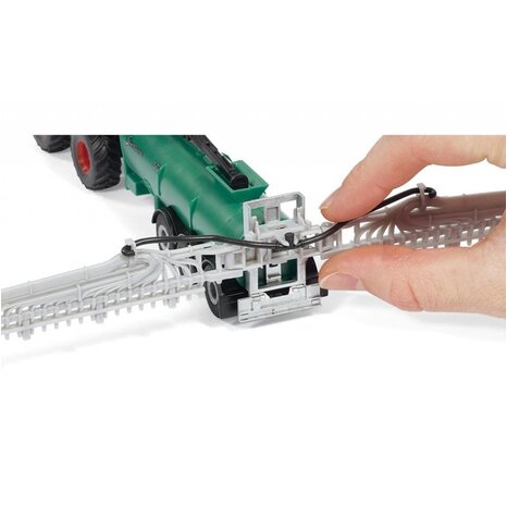 Für die Maßstabsfreunde der 87-fach miniaturisierten Landmaschinen erfüllt diese Fahrzeugkombination alle Wünsche! Der Systemschlepper Claas Xerion zieht den mächtigen Samson Fasswagen, der selbstverständlich auch absattelbar ist. Beson-ders imposant: Der originalgetreu nachgebildete Schleppschlauchverteiler am Heck des Fasswagens lässt sich auf eindrucksvolle Arbeitsbreite ausschwenken. Das Kabinendach des Claas Xerion ist selbstverständlich abnehmbar, die gummierten Reifen sorgen für eine satte Traktion. Die Bedruckung ist filigranisiert ausgeführt. Ideal für z.B. Modelleisenbahnen (H0).