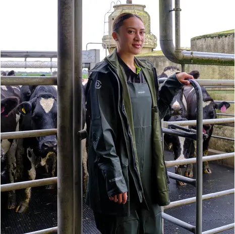 Die Technidairy-Überhose eignet sich hervorragend zum Melken, zur Kälberaufzucht oder auch nur zum Verlegen der Pause.